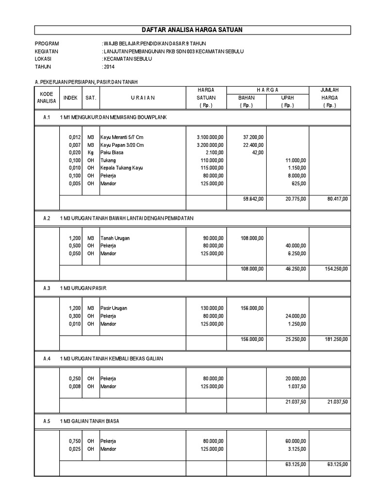Contoh Perhitungan Excel Ahsp Analisa Harga