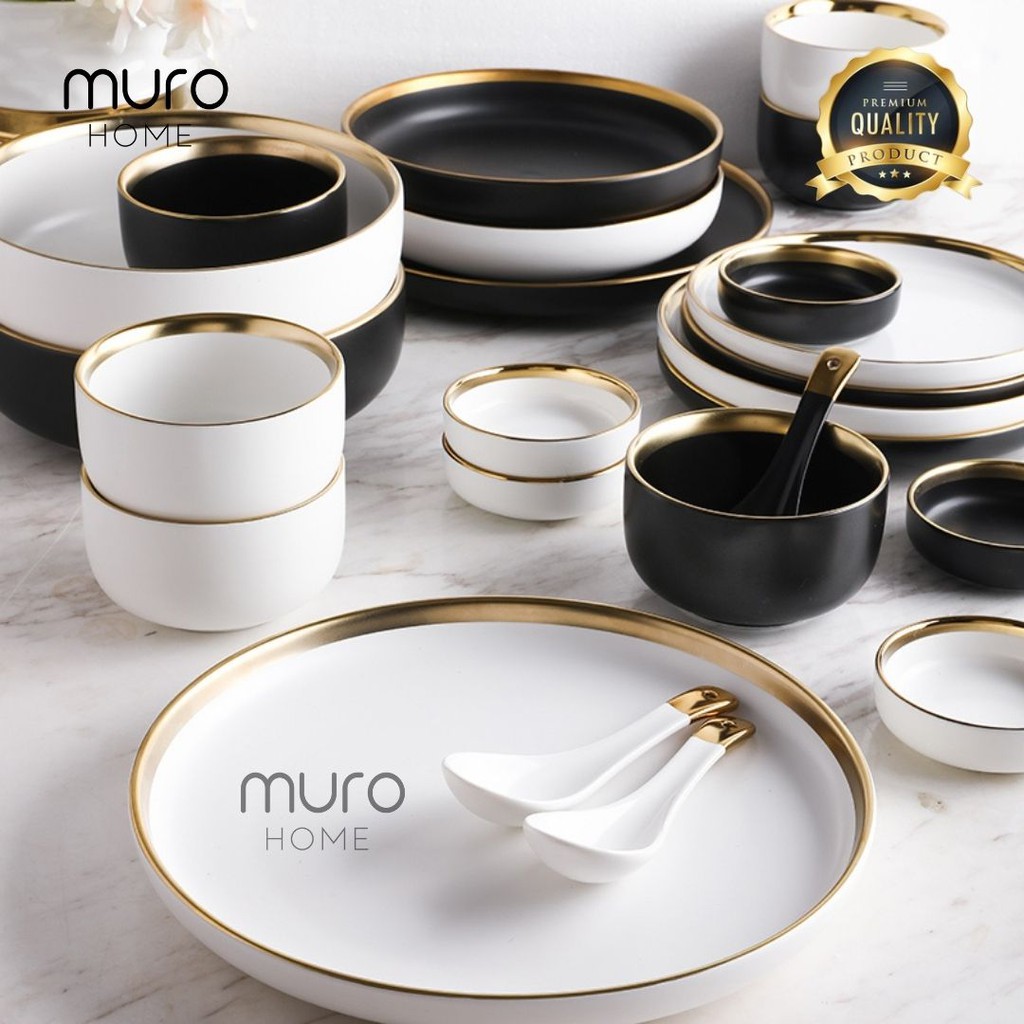Piring Mangkok Makan Keramik Set Pinggiran Emas Cantik Sumber : shopee.co.id